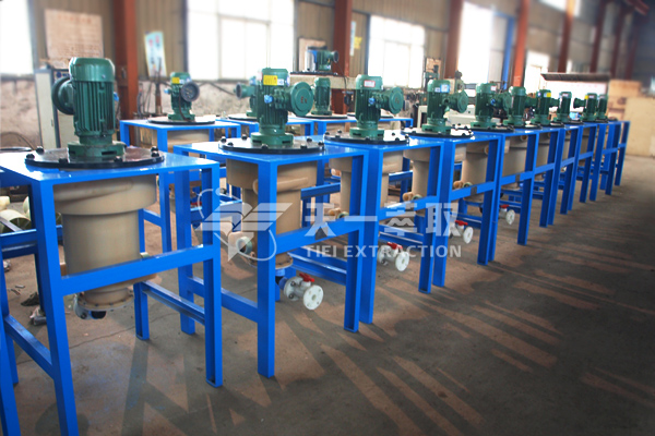 那么设备型号和材质怎么选择呢?这个需要看客户的处理量和料液体系,处理量的大小可以选择相应的型号,如果实验用也可以选择实验萃取机,材质的话如果料液体系是酸性的,需要选择防腐材料。一般使用几台设备萃取是需要根据具体工艺来定。
